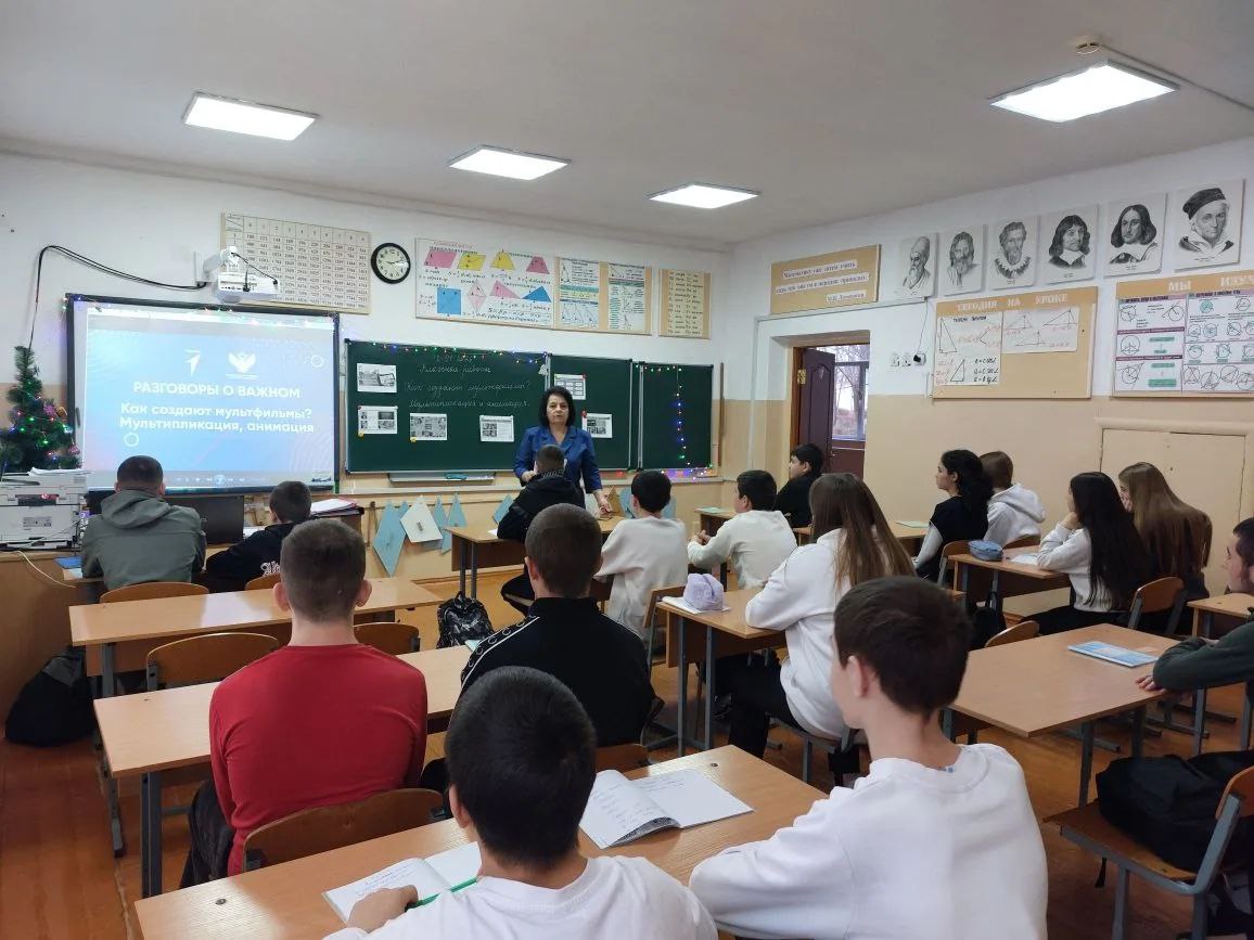 12.01.2026г в МБОУ «Первомайская ОШ имени Дьячкова Н.Н.» в рамках внеурочной деятельности «Разговоры о важном» состоялось увлекательное занятие на тему «Как создают мультфильмы».Целью этого занятия было не только рассказать о волшебстве, оживающем на экране, но и показать мультипликацию как сложный, многогранный и очень интересный процесс, в котором сочетаются искусство, наука и работа большой команды.